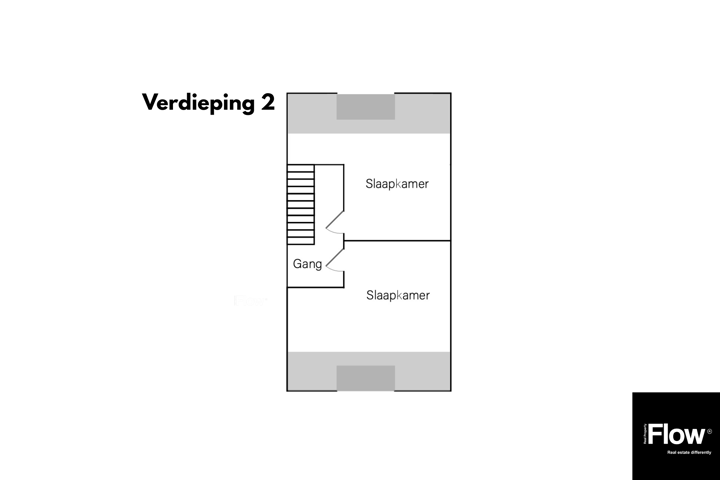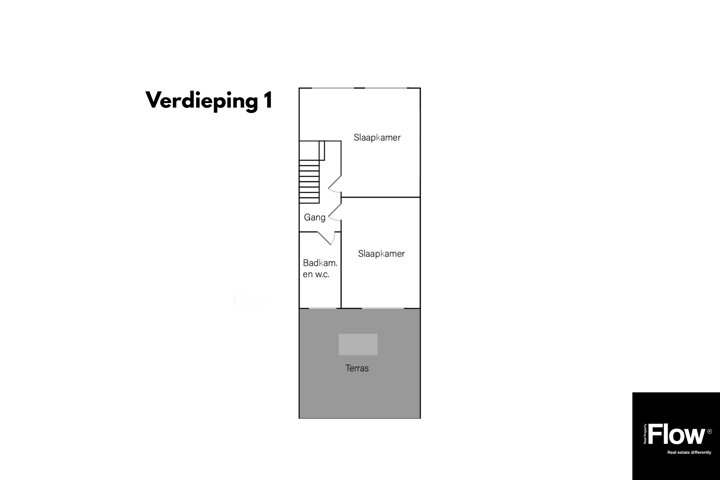 1st floor: hall de nuit, 2 chambres (± 19 m² et ± 14 m²), salle de douche (± 4 m²).