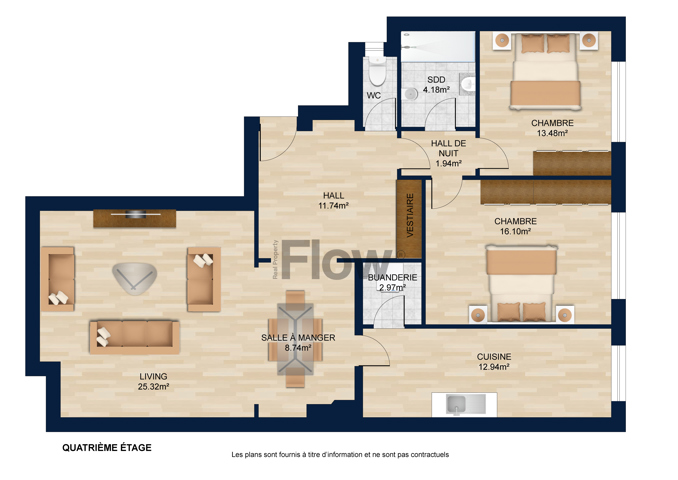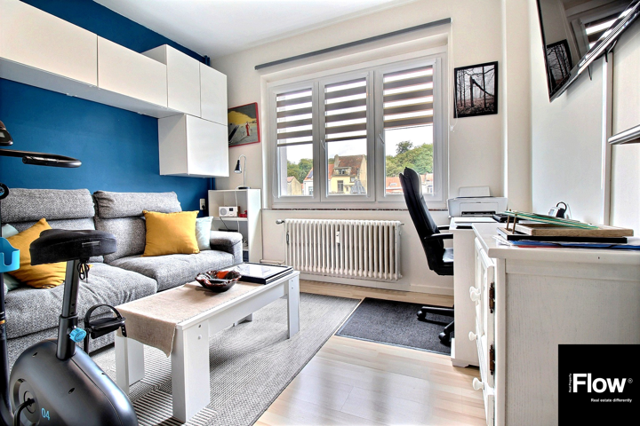 Make an offer from €300,000. Commune of Forest, close to the Duden Park. FLOW Real Property is offering for sale this spacious, comfortable 2-bedroom flat (107m2 according to PEB). Located on the 4th floor out of 5 in a well-managed condominium, benefiting from superb light. Within easy reach of public transport, shops, schools and all other amenities. It comprises: entrance hall, living room, dining room, fully equipped kitchen (oven, dishwasher, hob, double sink, extractor hood, etc.), night hall, WC, 2 bedrooms, shower room, utility room. Cellar in basement. Renovation 2015′. REAR FACADE + ROOF INSULATED BUILDING. PEB D+. Videophone. Built-in cupboards. Armoured door. Double glazing. Charges: 261€/month including heating, water, communal areas, management, cleaning, building insurance, reserve fund, lift. OPTIONAL EXTRA GARAGE: + 40.000€. Information and visits? www.flowrealproperty.be or 02/304.69.98