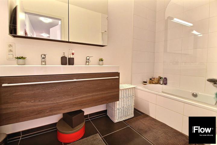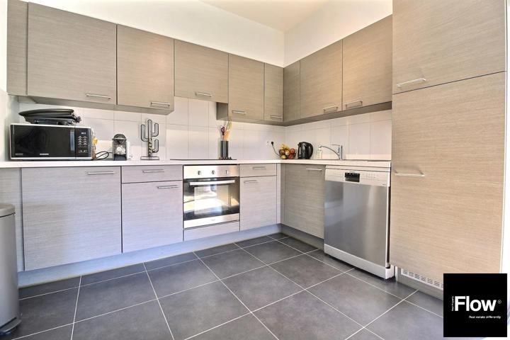 You'll love this beautiful ground floor for sale. Located in Diegem, close to many shops (OKAY at 100m), transport, schools, airport and all other facilities. Newly built building (2012) without lift of 6 units. The property is composed as follows: entrance hall (with built-in cupboard), living room, dining room, super equipped USA kitchen (oven, hob, hood, fridge, freezer), night hall, 2 bedrooms (9 and 13m2), laundry room, bathroom, terrace, L-shaped garden. External parking spaces for the inhabitants + private underground parking. Cellar. The electricity is in conformity. Individual energy meters (water, gas and electricity). Videophone. Double glazing with acoustic insulation. Excellent PEB: 171. COMPULSORY PURCHASE OF PARKING SPACE + 20.000€. Info and visits? www.flowrealproperty.be or 02/303.69.98