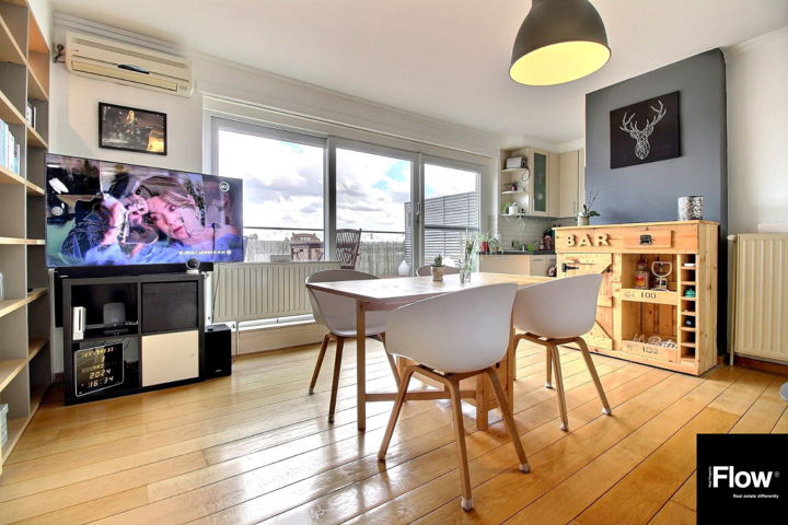 Ontdek dit charmante penthouse van 57 m², perfect gelegen op de 5e verdieping van een klein condominium met een lift die voldoet aan de huidige normen. Het appartement beschikt over een lichte woonkamer en een volledig uitgeruste keuken met oven, magnetron, vaatwasser en wasmachine. De ruime slaapkamer heeft een kleedkamer en toegang tot een veranda die kan worden gebruikt als kantoorruimte, naast een badkamer die is gerenoveerd in 2024.