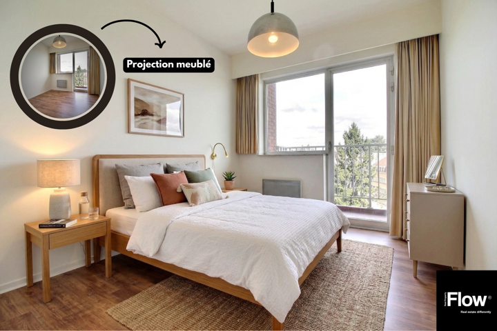 Gemeente Molenbeek (zeer groene wijk E. Machtens), het kantoor FLOW Real Property stelt u met de verkoop dit grote appartement 3 kamers (143m2 volgens PEB) profiteren van een prachtig uitzicht zonder tegenover.