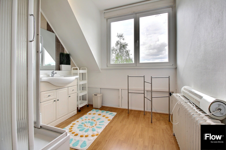 Le 3e étage abrite deux chambres (+/- 17 et 15 m²), dont une avec mezzanine, une seconde salle de douche et un WC.
