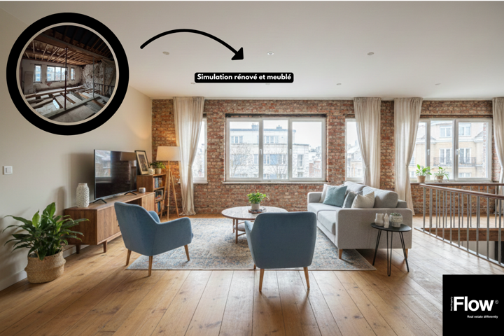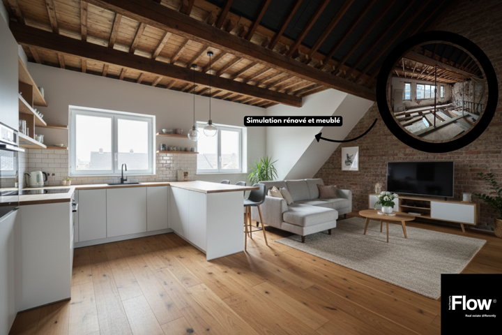 3e étage : ± 63 m² (avec mezzanine et chambre supplémentaire)