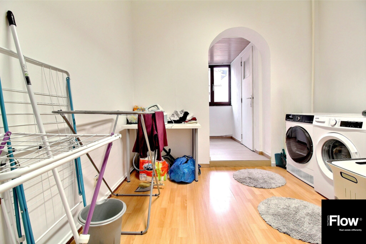 Un compteur de gaz. Un compteur d’électricité. Un compteur d’eau. Double vitrage aluminium à l’avant et PVC et bois à l’arrière. Parlophones. PEB: F. Electricité conforme. Système d’alarme.