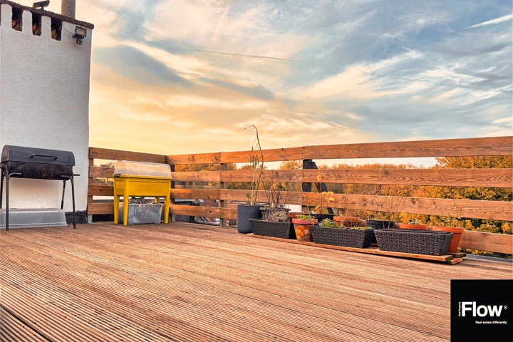 Terrasse (non officielle) de ±27 m² offrant une belle vue dégagée et un agréable espace extérieur pour les beaux jours