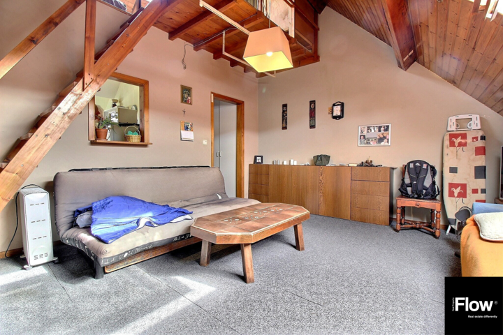 Au 2e ETAGE: hall d’entrée, salon, cuisine, salle de douche avec WC et chambre en mezzanine.